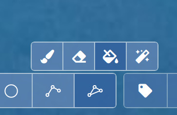 The polygon fill tool allows you to extend existing polygons with a circular brush. The button to activate the polygon fill tool appears when you hover your cursor over the button of the polygon tool: